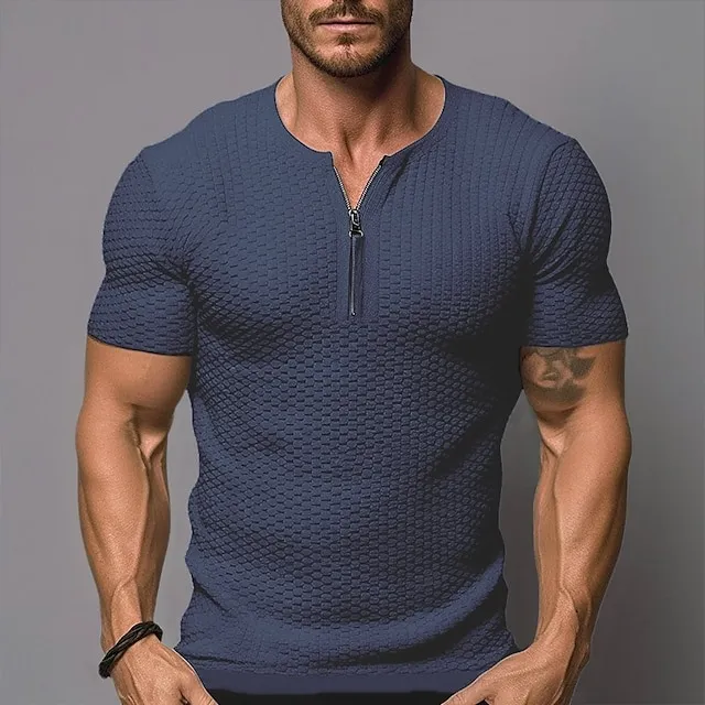 Tops Type: Waffle Knit Tee, Solid Quarter Zipper Tee, T shirt Tee,