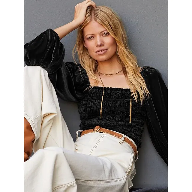 – Square neckline adds a touch of sophistication.