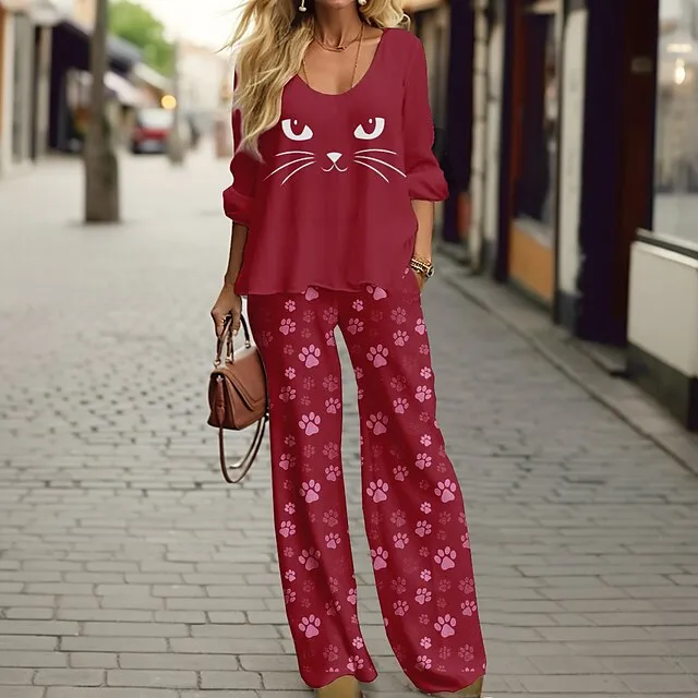 – The pants included in this set are of the wide leg type, providing comfort and a trendy look.